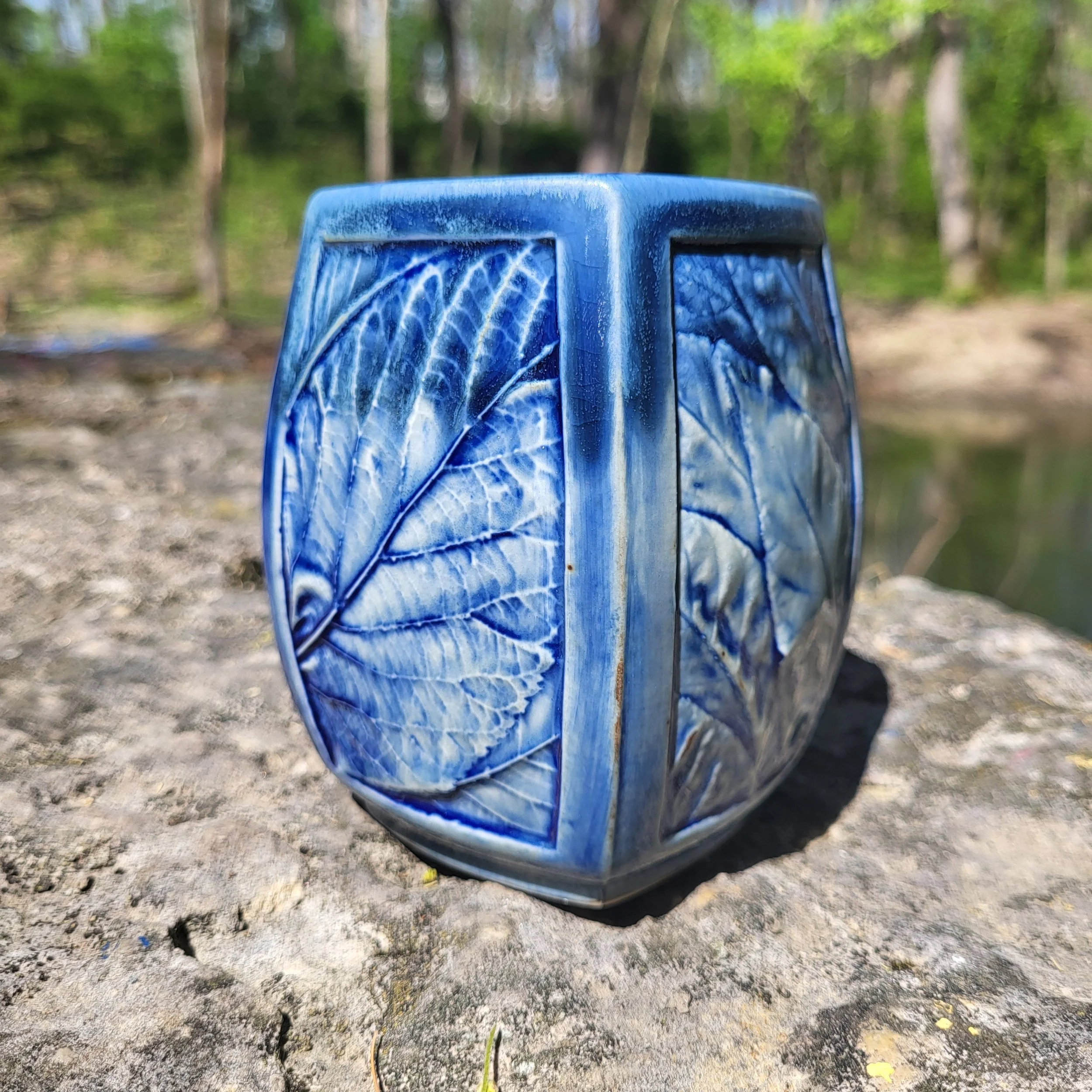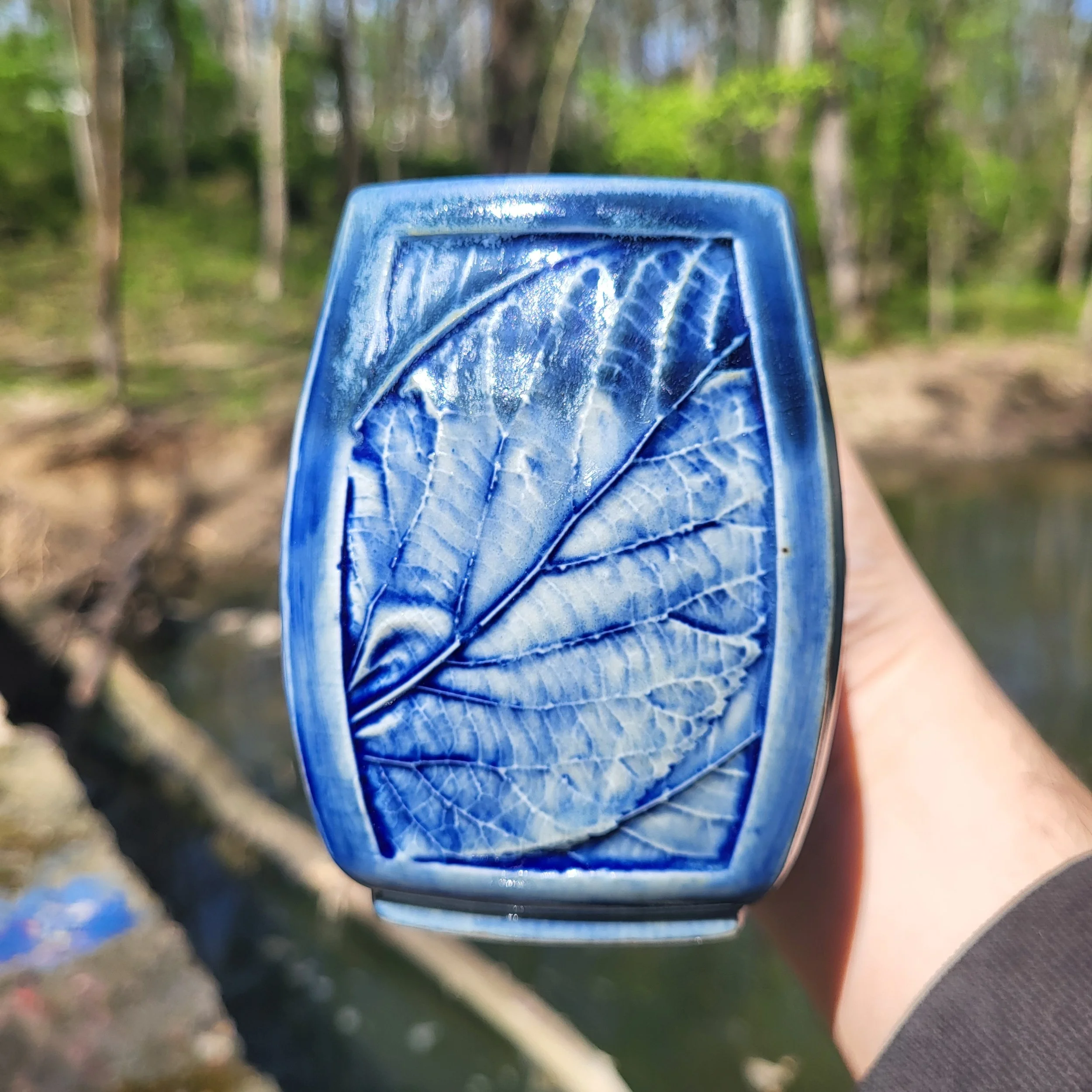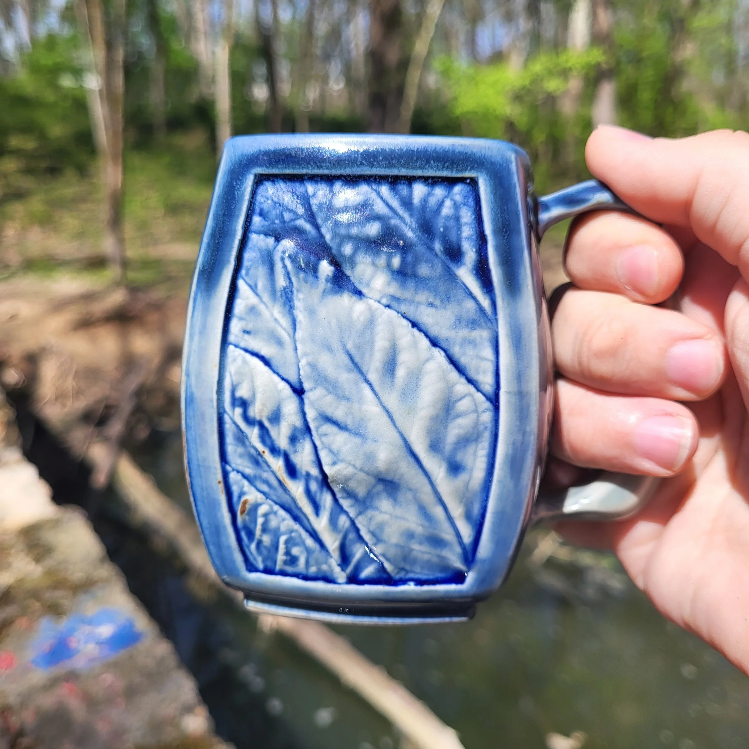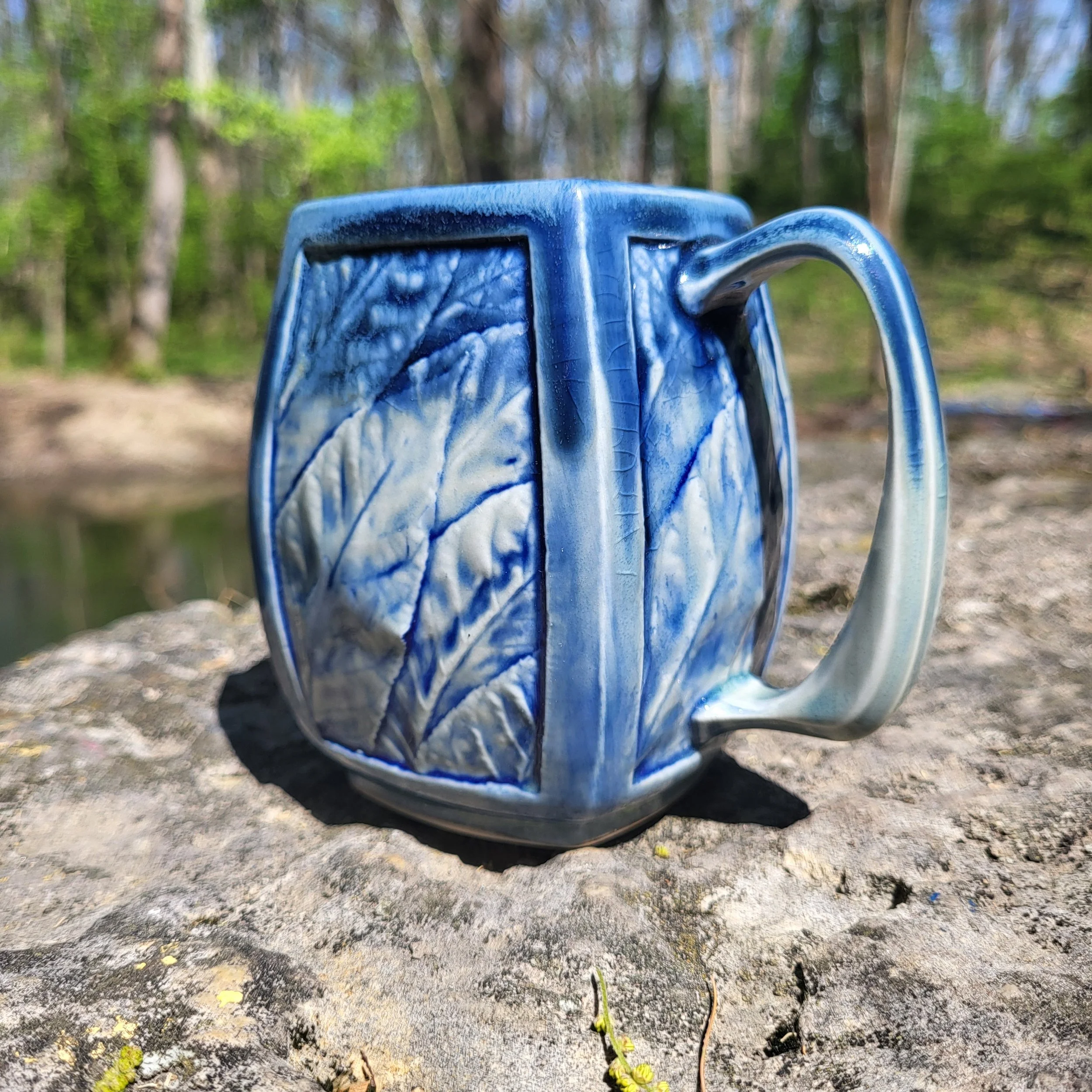 Leafmug, blue with rim dip