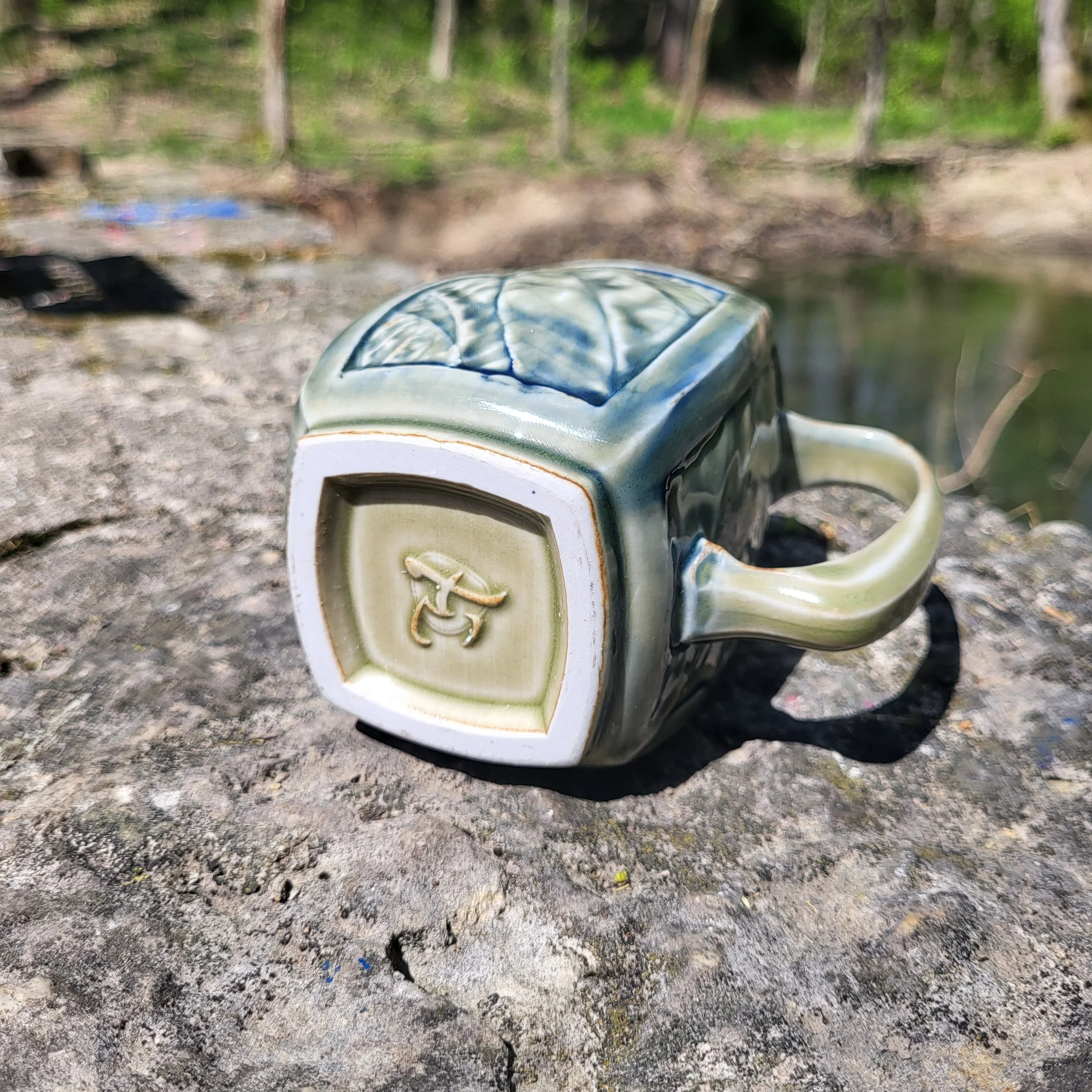 Glazes and underglazes are carefully selected to accentuate these natural qualities, to both preserve and celebrate their wildness. These mugs are best enjoyed by the riverside, or where any green place can be found.