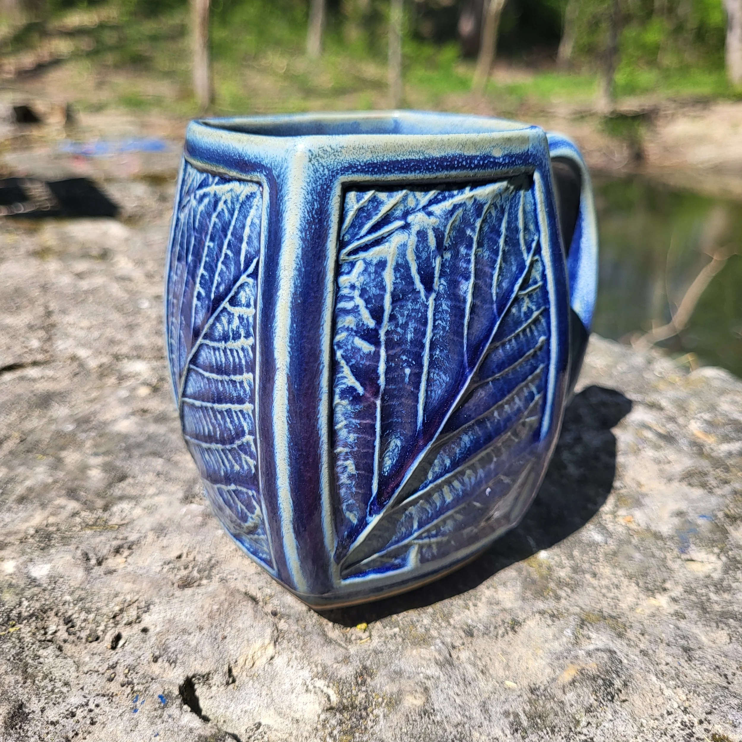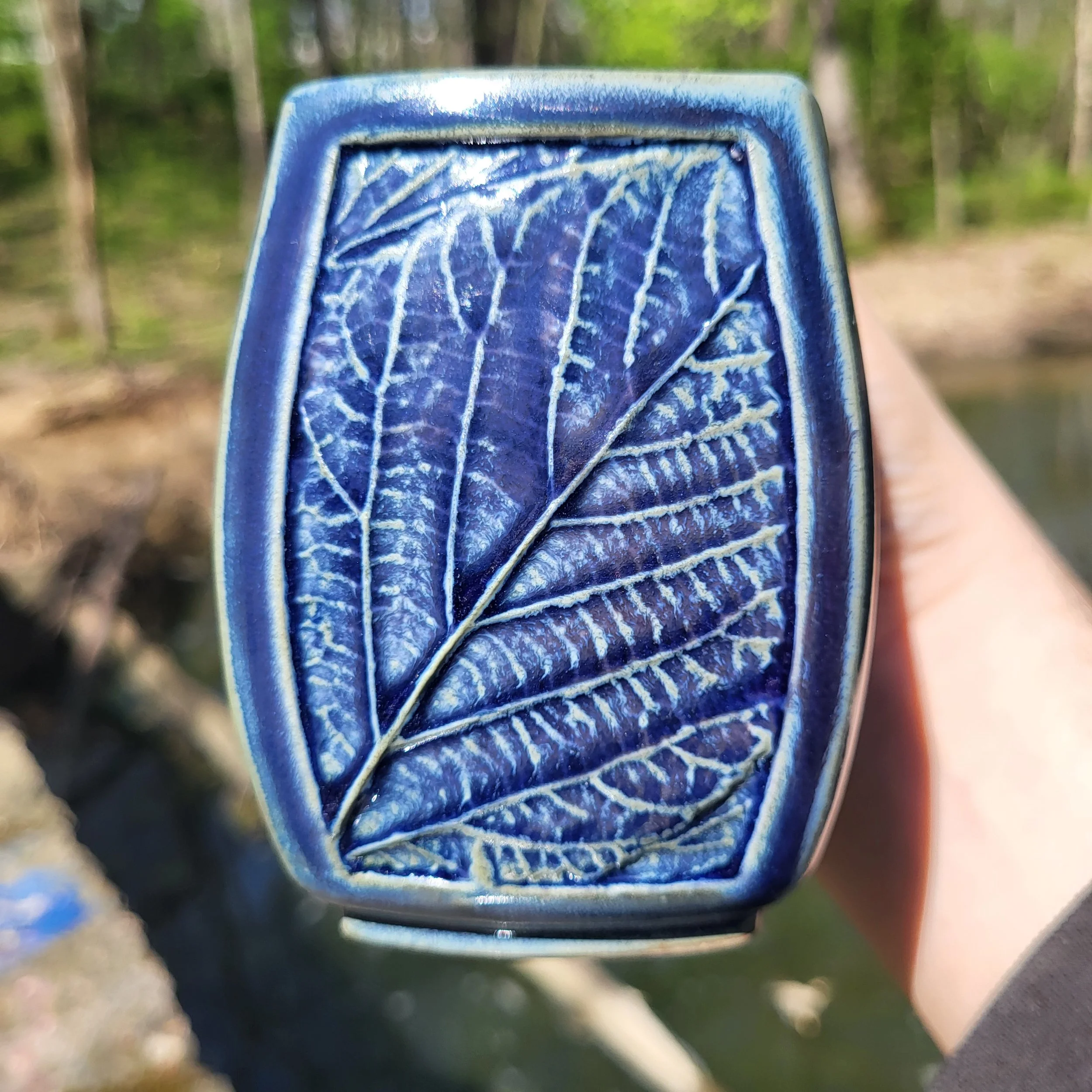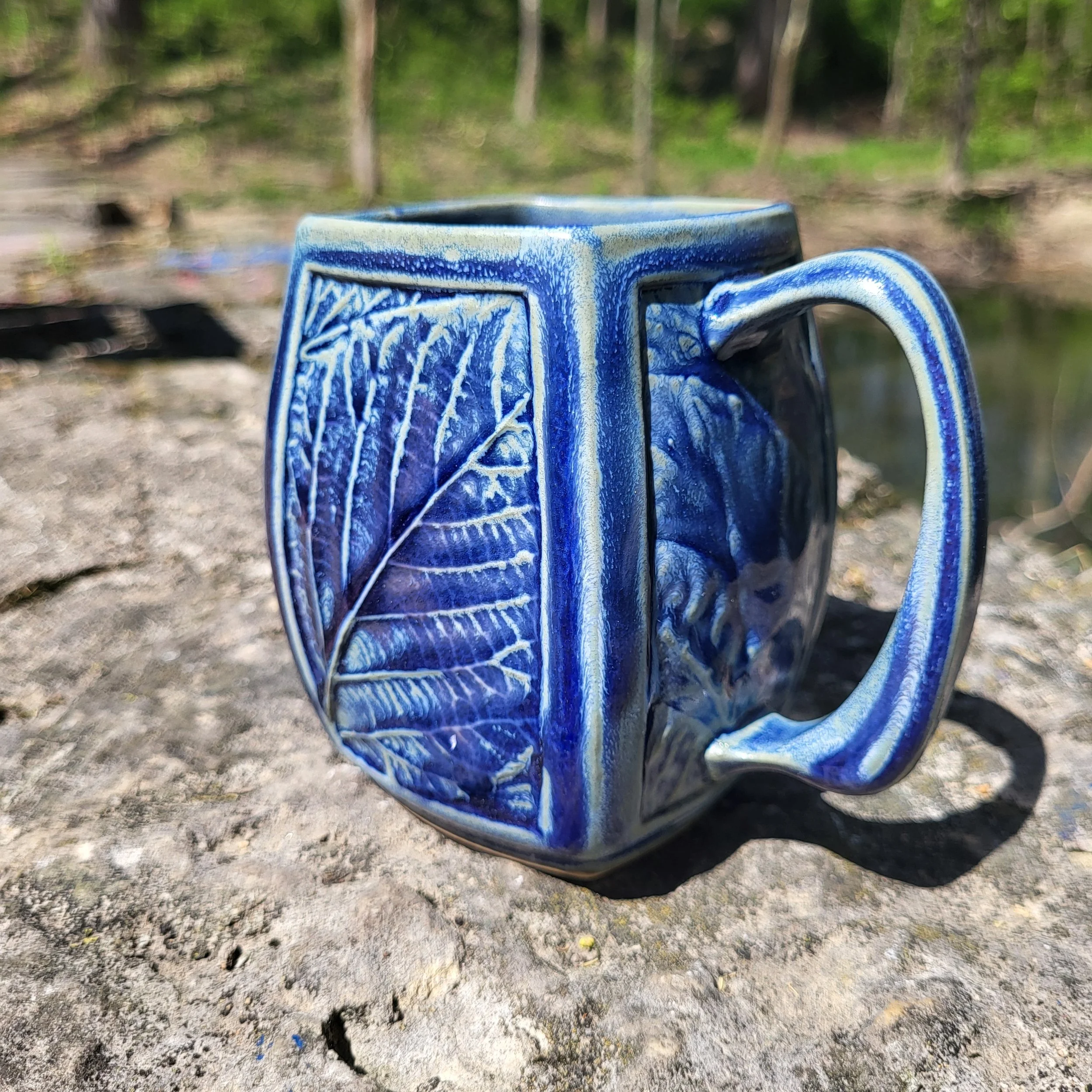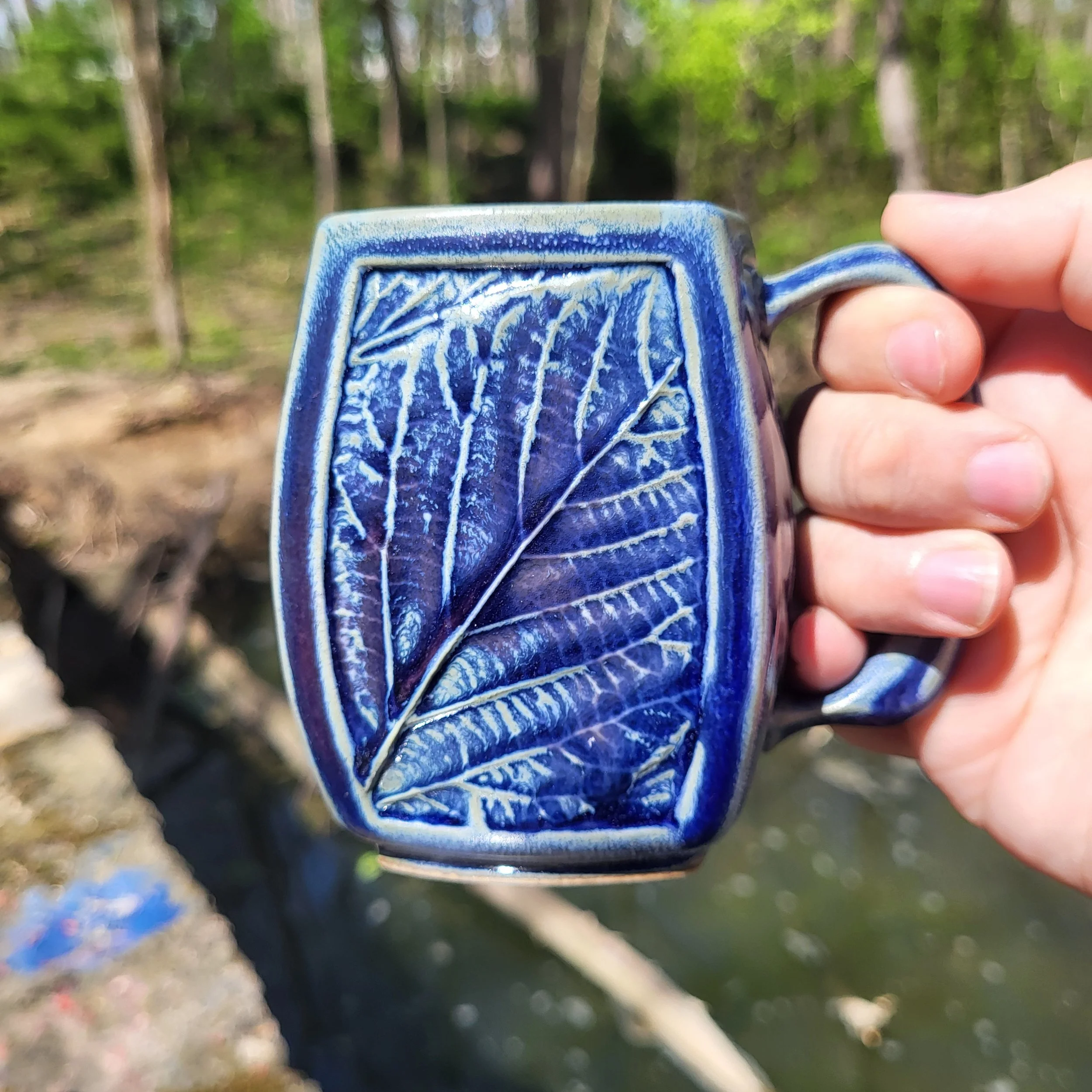 Leafmug, runny blue